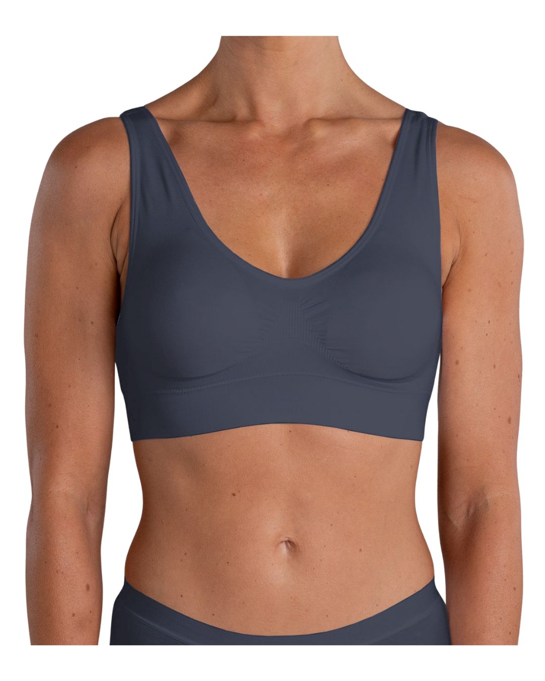 Mjuk bh konstruerad med minimalt antal sömmar för en behaglig känsla mot huden. Bh:n har djup v-ringning, breda axelband och djupringad rygg. Uttagbar padding för flexibel komfort. Utan knäppning bak.