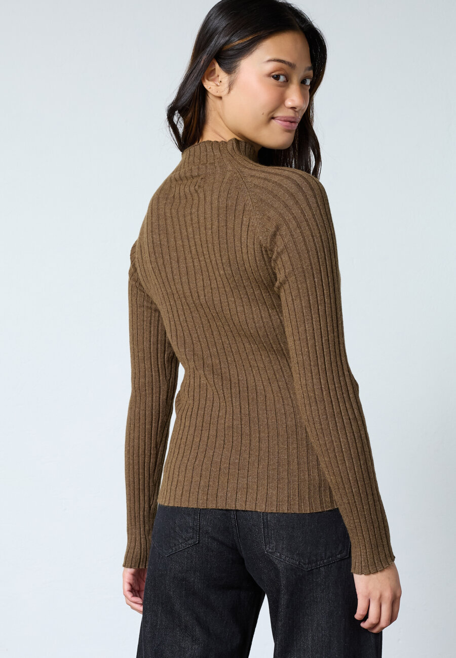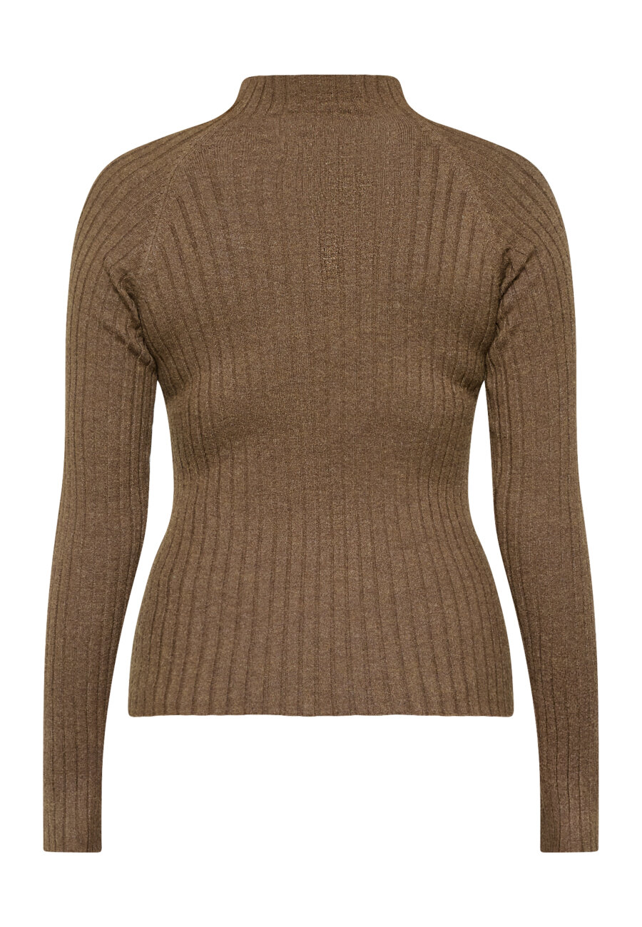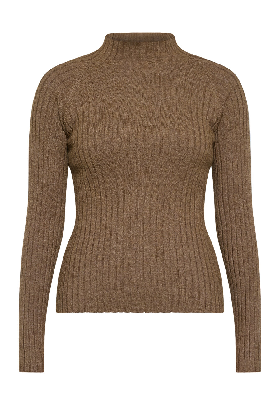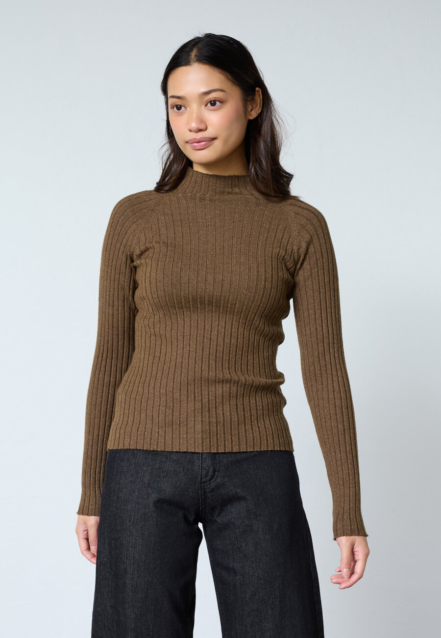 En åtsittande, ribbad tröja med långa ärmar och en lätt uppåtstående krage. Den har en mjuk och stretchig kvalitet. Snygg att ha under kavaj eller kofta.