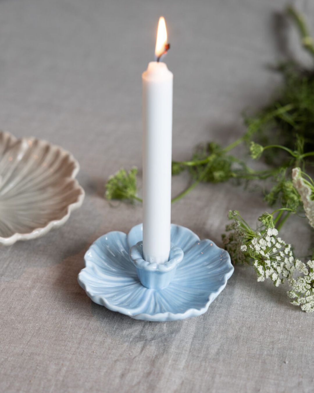 Keramikljusstake i form av en underbar blomma. Detta vackra konstverk är både dekorativt och funktionellt. Placera ljusstaken i mitten av matbordet för att skapa en mysig känsla, eller ställ den bredvid sängen och använd den även som förvaring för smycken.