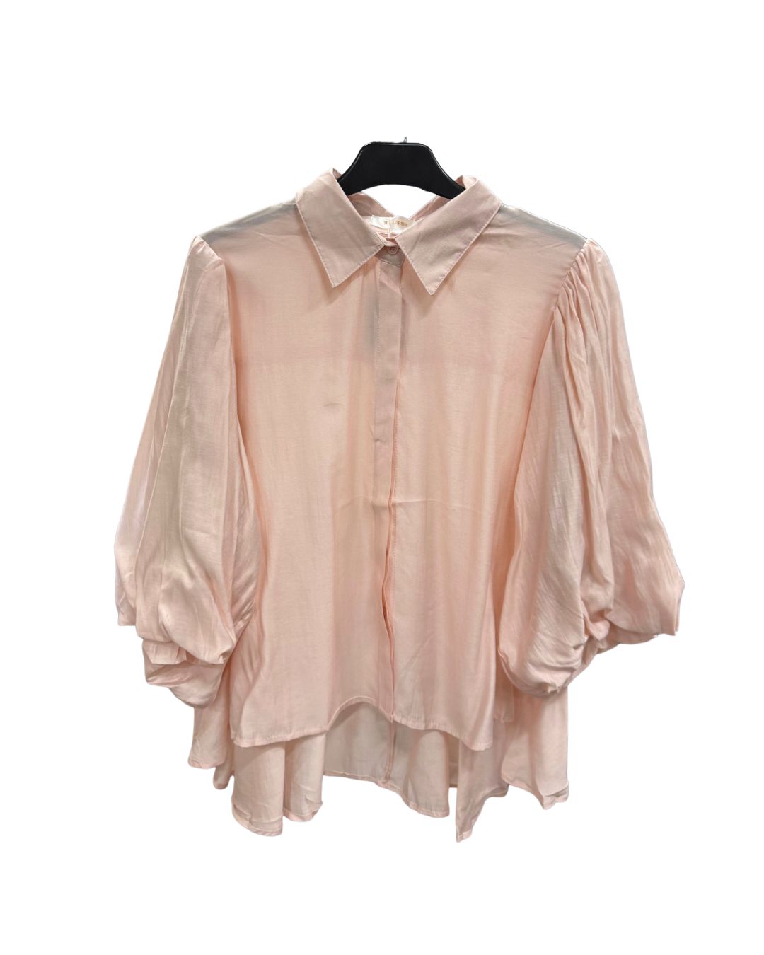 Caramelle Blus är tillverkad i mjuk viskos som faller vackert. Den har trendiga ballongärmar, dolda knappar framtill och en längre bak än fram för en modern silhuett. Ett mångsidigt plagg som passar både till vardag och fest.