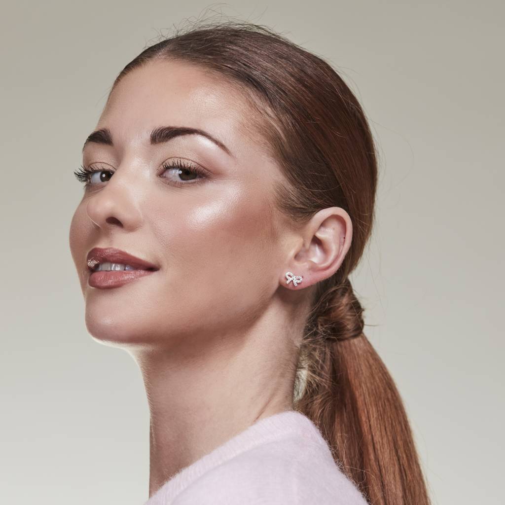 Söta små rosett örhängen med vackert gnistrande cubic zirkonia stenar. Passar både ung som vuxen.