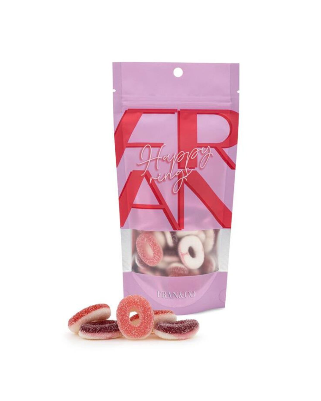 Ingredienser: Glukossirap, socker, 5 % fruktjuice från fruktjuicekoncentrat (jordgubbar, körsbär, hallon), gelatin, syror (citronsyra, mjölksyra), fuktighetsbevarande medel (sorbitol), färgämnen (svarta vinbär, morot, sötpotatis, rädisa, äpple, fläder), naturliga aromer.