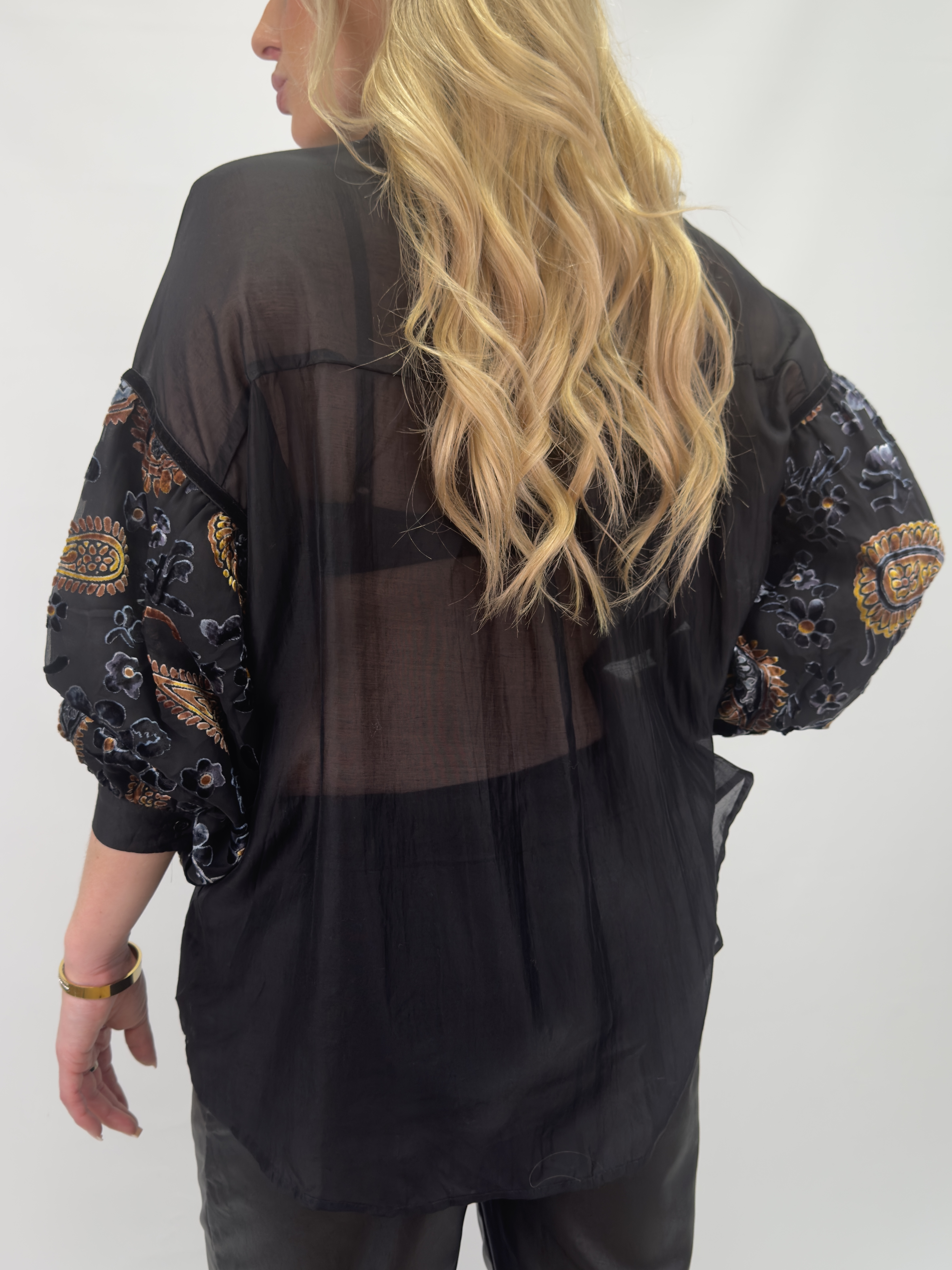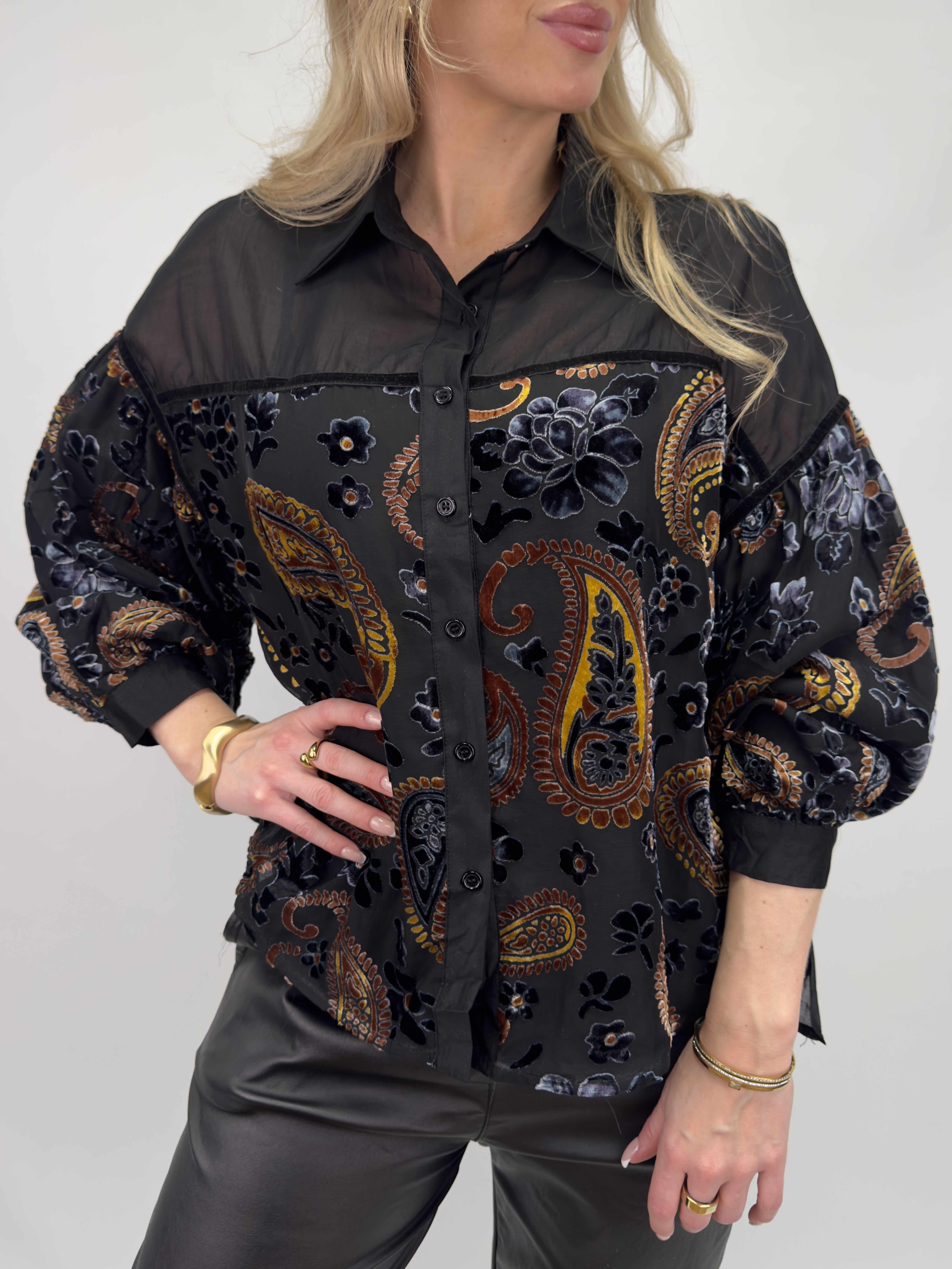 Hella är en stilren skjorta med paisleymönster och enfärgade detaljer som skapar en elegant kontrast. Den har en avslappnad passform och en subtil glans – perfekt både för vardagsbruk och kvällar ute.