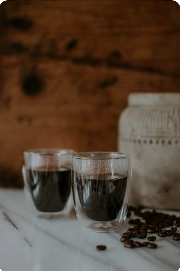 Drick ditt kaffe ur en vacker glasmugg fylld med ljuvligt kaffe från Klaras, med smak av jul.