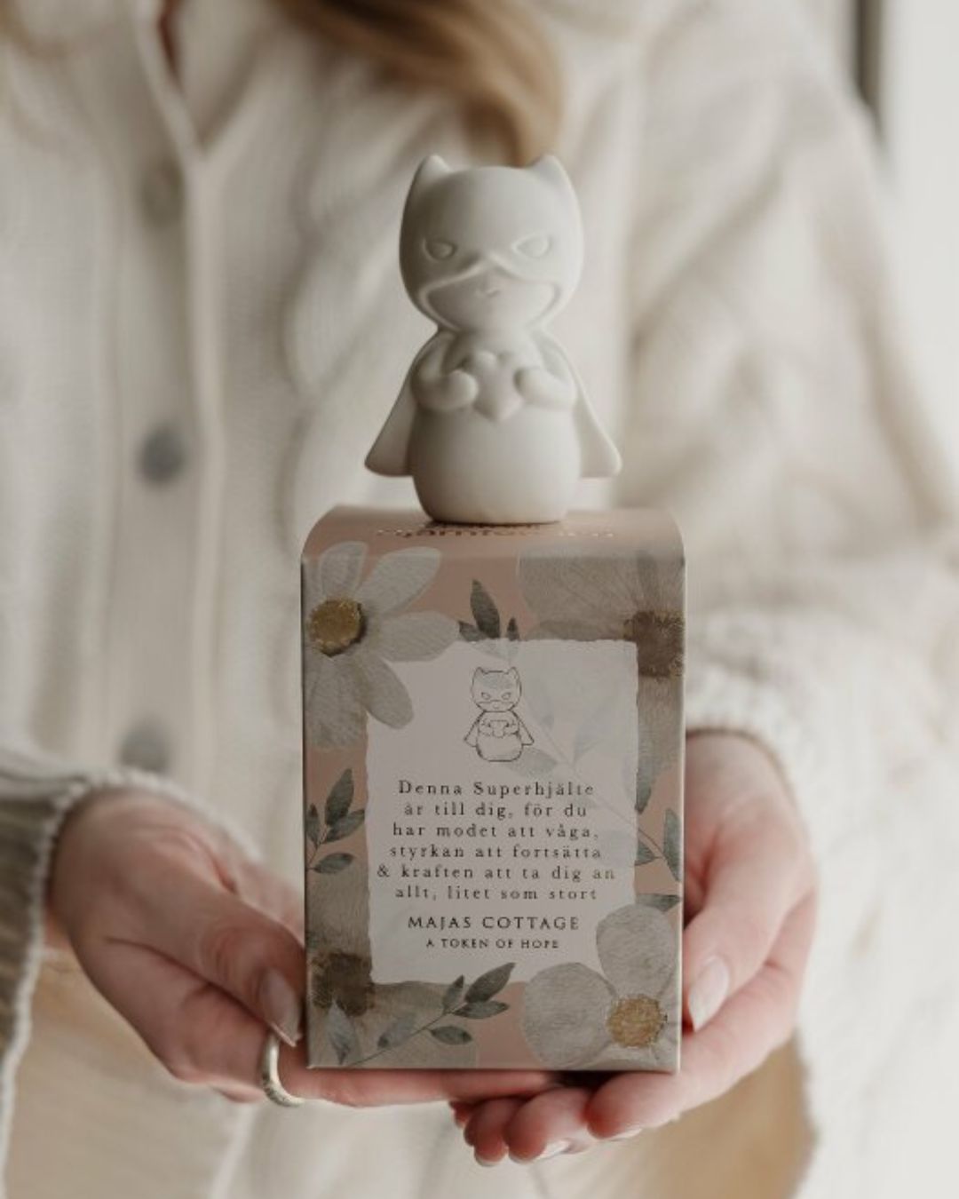 - Text: Denna superhjälte är till dig, för du har modet att våga, styrkan att fortsätta & kraften att ta dig an allt, litet som stort / This superhero is for you because you have the courage to dare, strength to keep going & power to take on anything, big or small.