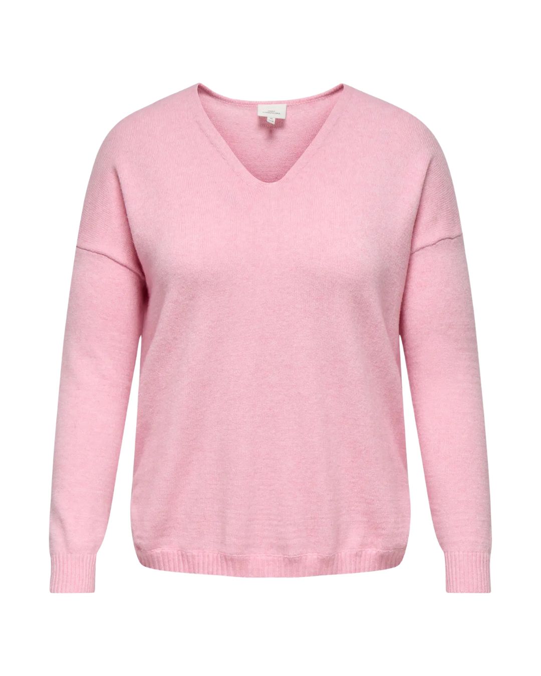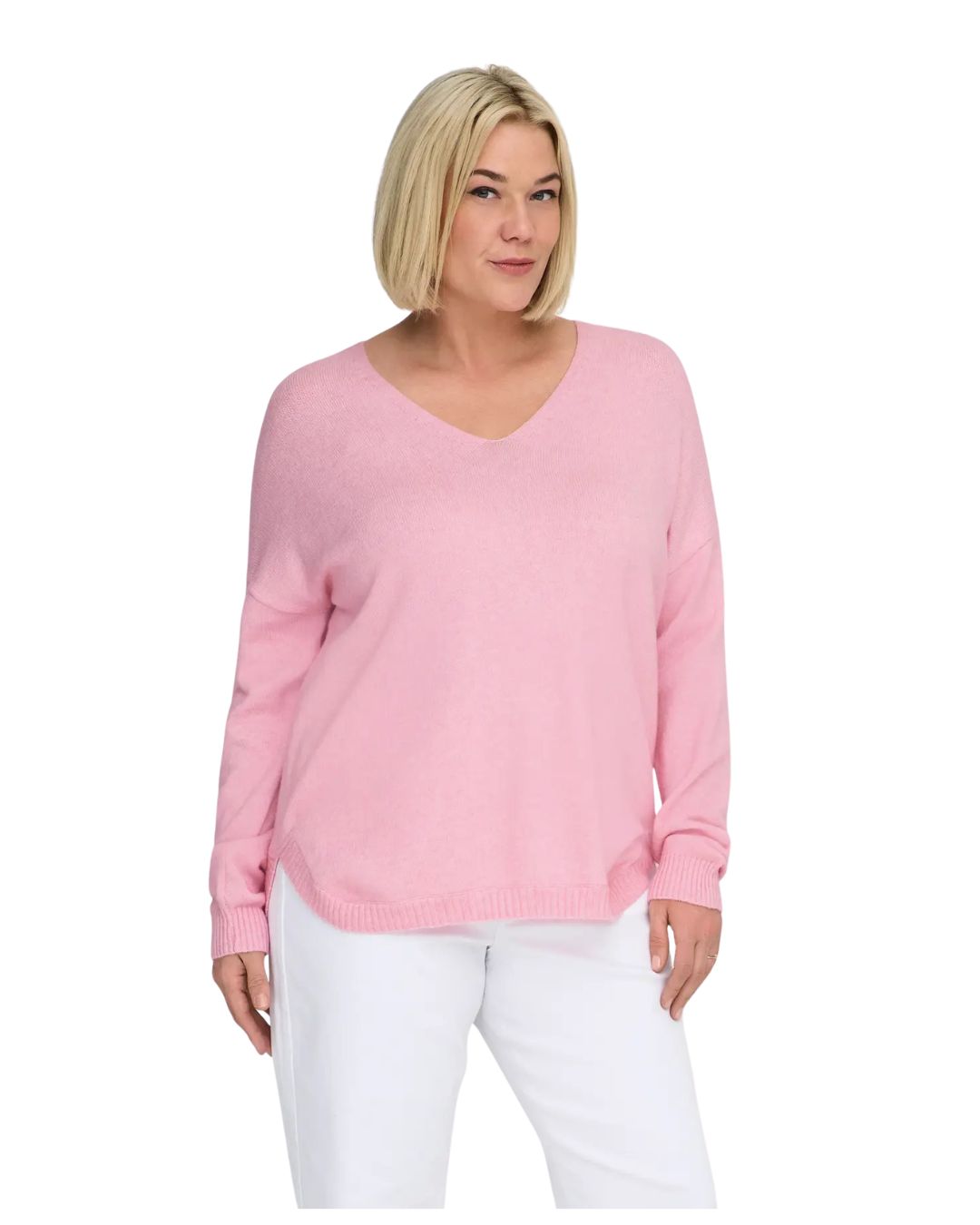 En mjuk och stilren stickad tröja med klassisk V-ringning, designad för att passa kurviga kroppar på ett smickrande och bekvämt sätt. Den normala passformen ger en balanserad silhuett som följer kroppen utan att sitta för tight, vilket gör den till ett perfekt vardagsplagg med både komfort och stil.