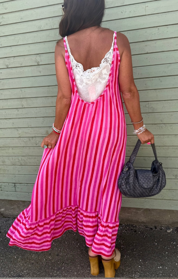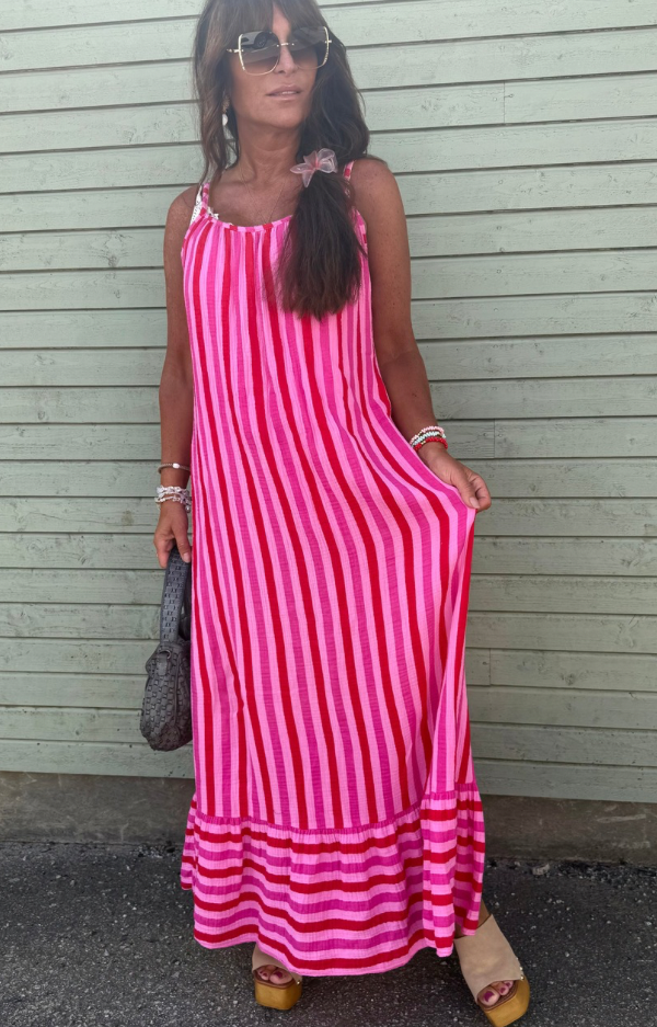 Den här klänningen i ett randigt print är för dig - oavsett om du går barfota på stranden eller kliver in på en after beach. Med sin luftiga passform i sitter den avslappnat men smickrande på de flesta kroppstyper.