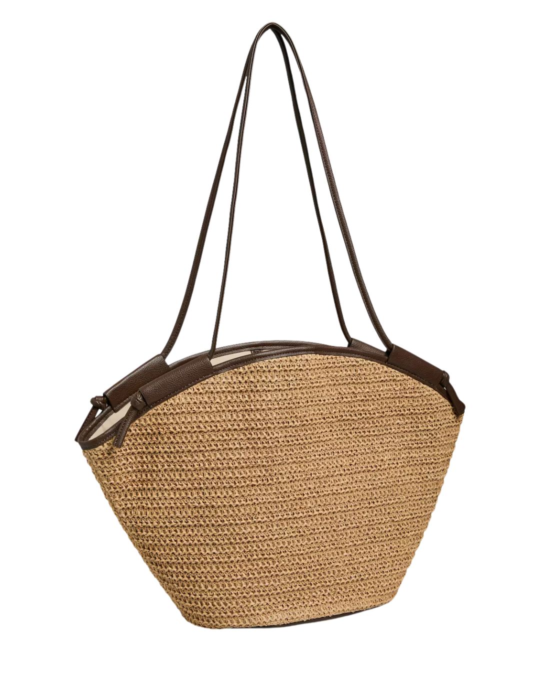 Stilren väska i halm/bast med elegant flätstruktur och neutrala färger som passar till allt. Väskan har ett rymligt huvudfack samt ett praktiskt dragkedjefack på insidan för mindre tillhörigheter. Infattad kant/fåll ger en genomarbetad finish, medan ton-i-ton-sömmar skapar ett harmoniskt helhetsintryck. Försedd med karabin för extra funktionalitet.
