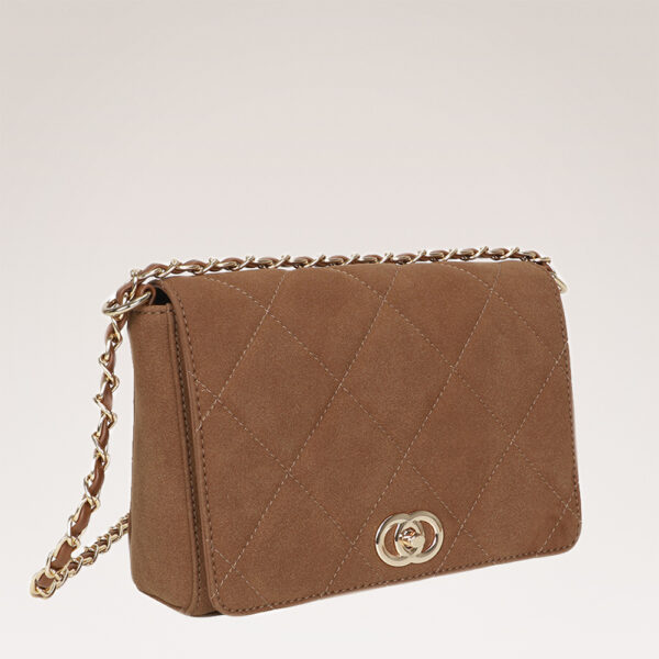 Det gyllene kedjehandtaget ger en sofistikerad touch och möjliggör smidig bärbarhet, såväl som över axeln som i handen.