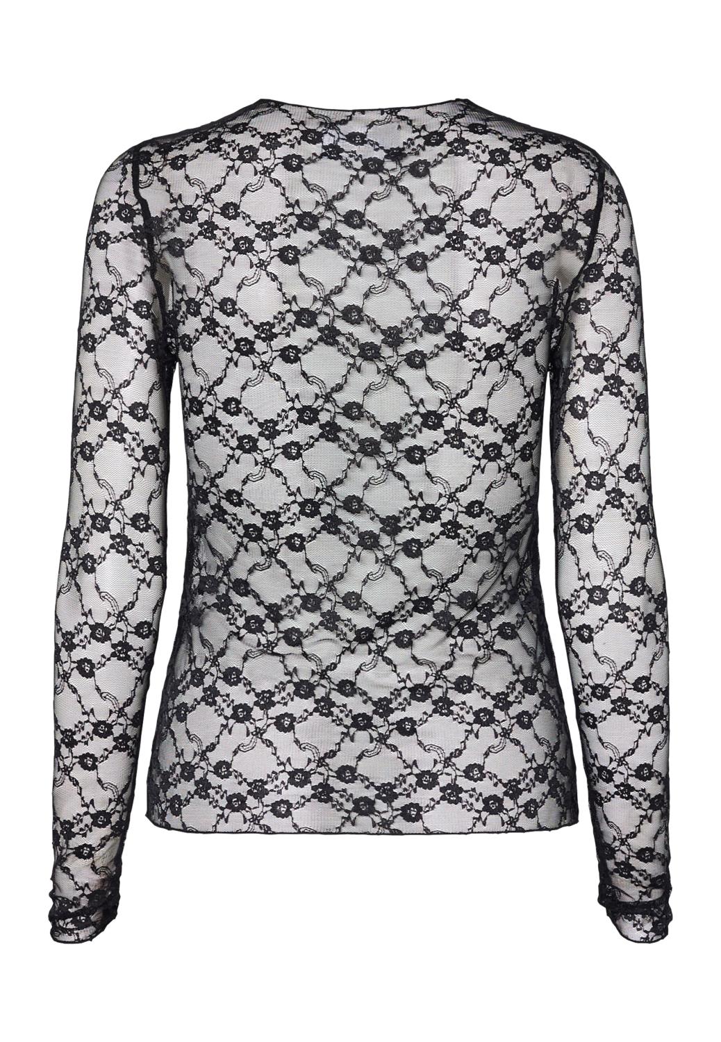 En långärmad spetsblus med rund urringning. Den har en enkel och tajt passform.